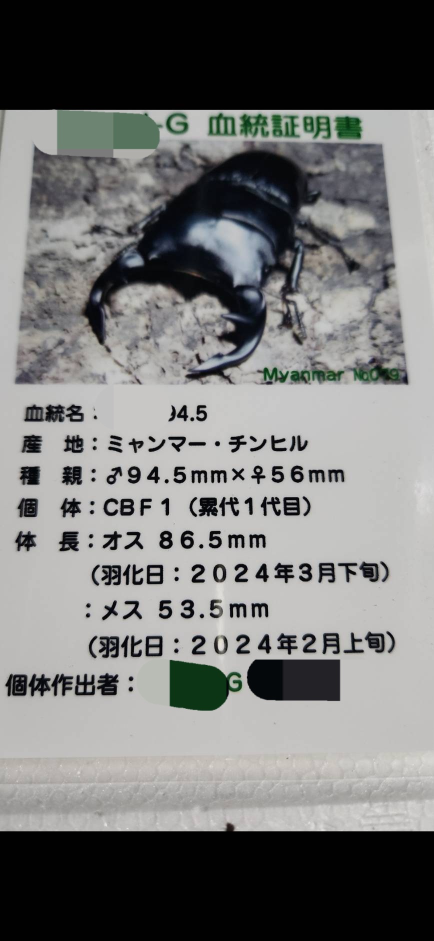 親サイズ ♂86.5×♀53.5(Yea〇94.5ライン)