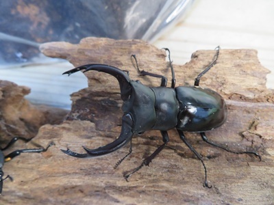 大型になると、大アゴはシカクワガタのように基部と先端部分で大きく屈曲して迫力が増します。