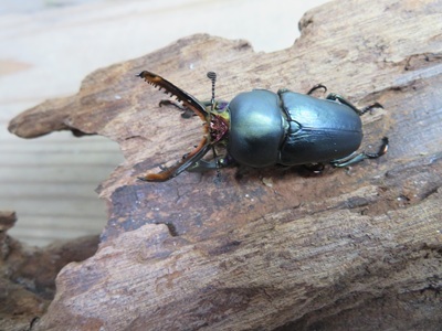 ♂のユニークな顎の形状もさることながら、♀の色は赤/金/緑/青/紫と様々…。特にブルー系は非常に貴重な個体と言われる。