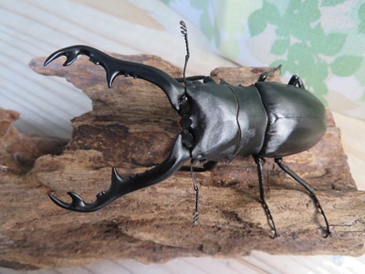 ◎「ギラファ」とはキリンのことで、その名のとおり顎が長いのが特徴です。亜種ボロブドゥールは大顎が太短く、先端部のカギ状内歯が大きくなる種です。