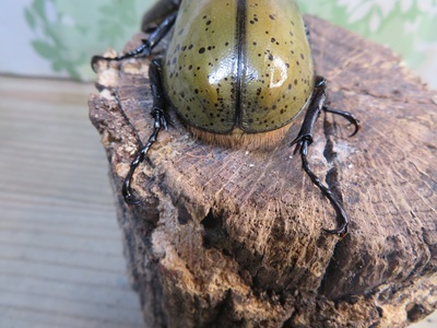 ☆ヘラクレスの中でも小型の亜種レイディ。上翅は黄土色で光沢が強く、黒斑が少ない種です。
