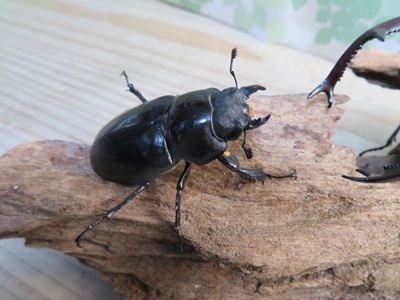 ◎世界最大のミヤマクワガタです。原名亜種(ヨーロッパミヤマ cervus cervus)に比べ体が細長く、大アゴが前方に伸び先端のフタマタが狭く鋭角に別れます。