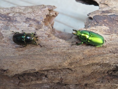 オスは金緑色のメスは緑色味をおびた赤銅色。