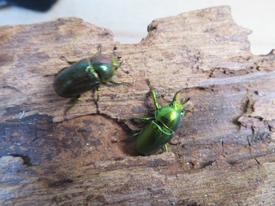 オスは金緑色のメスは緑色味をおびた赤銅色。