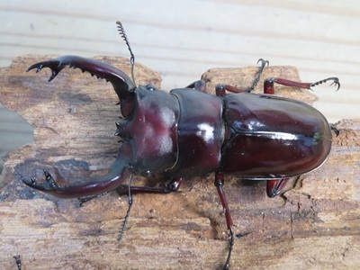 大型になると大アゴの湾曲が強くなり、複雑な形状に発達しいっそう迫力が増すクワガタです。