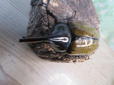 頭部と前胸背は黒色でヘラクレスの小型個体のようで、ヒルスとヘラクレスの中間のような形状となる面白い亜種です。