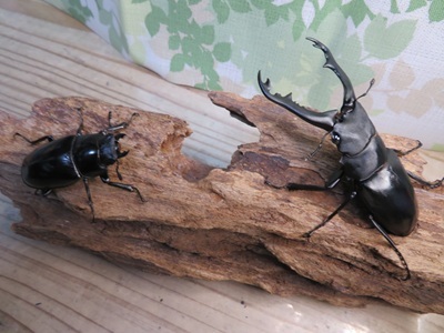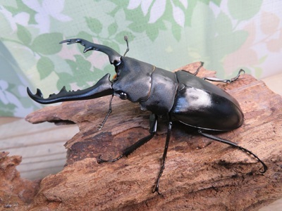 ◎「ギラファ」とはキリンのことで、その名のとおり顎が長いのが特徴です。亜種ボロブドゥールは大顎が太短く、先端部のカギ状内歯が大きくなる種です。
