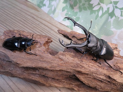 ◎「ギラファ」とはキリンのことで、その名のとおり顎が長いのが特徴です。亜種ボロブドゥールは大顎が太短く、先端部のカギ状内歯が大きくなる種です。