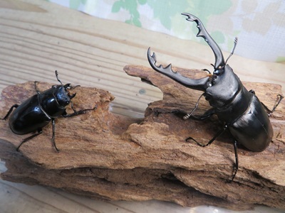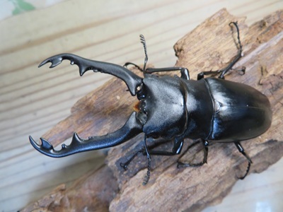 ◎「ギラファ」とはキリンのことで、その名のとおり顎が長いのが特徴です。亜種ボロブドゥールは大顎が太短く、先端部のカギ状内歯が大きくなる種です。