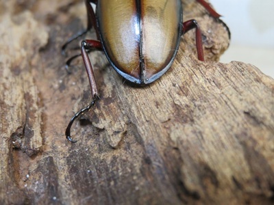 ※背中の模様が大変綺麗なアフリカを代表するノコギリクワガタです。ウムハンギノコギリは4亜種に分類されるという学説もあります。「世界のクワガタムシ大図鑑」(2010年むし社)では亜種ではなく別種とし、大アゴの上下の湾曲がゆるやかな種を本種とし、急角度なものをエリザベスノコギリとして分類されています。