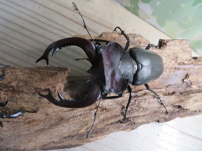 ◎世界最大のミヤマクワガタです。原名亜種(ヨーロッパミヤマ cervus cervus)に比べ体が細長く、大アゴが前方に伸び先端のフタマタが狭く鋭角に別れます。