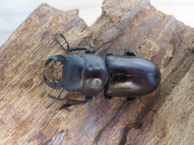 ※スツラリスコクワガタに似た小型種で、大アゴ基部の外縁が基方を向いて小さく突出します。黒色と褐色の2型がいます。
