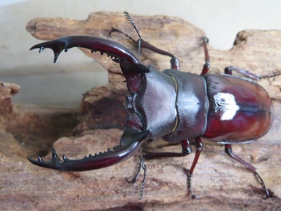 大型になると大アゴの湾曲が強くなり、複雑な形状に発達しいっそう迫力が増すクワガタです。